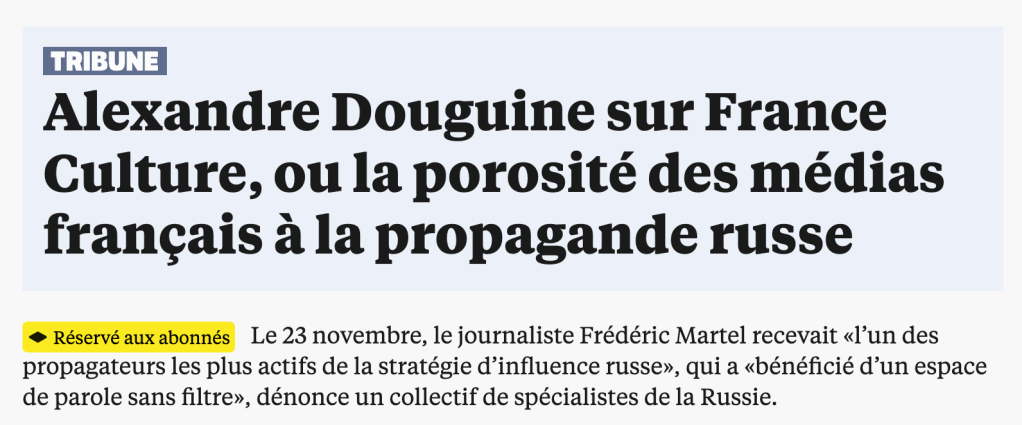 Dangereux – je mesure mes mots – parce qu’en affichant une intention de dénoncer l’exercice du pouvoir autoritaire, il contribue à l’inverse à renforcer le récit russe, et aide le Kremlin à propager son narratif dans la société française.