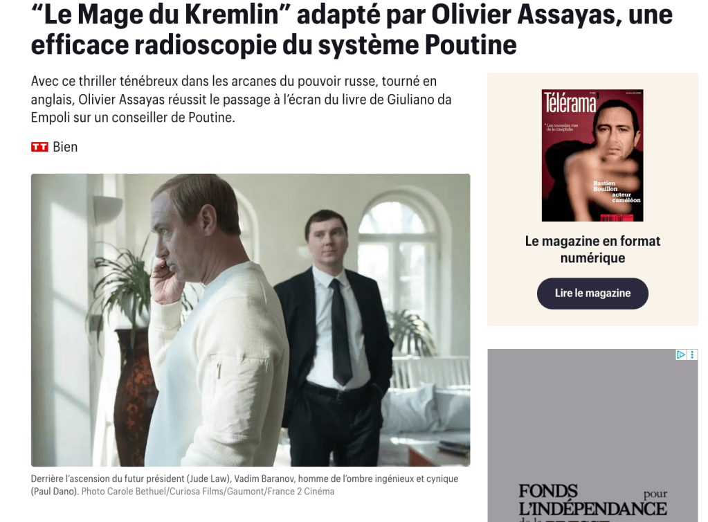 « ‘Le Mage du Kremlin’ (le film) est à peu près le meilleur cadeau que nous puissions faire au Kremlin (le vrai). »