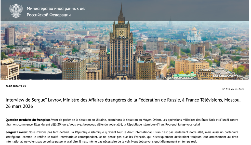Le pouvoir russe ne cherche plus à nous convaincre de le suivre : il cherche à projeter une image de force, de contrôle et de détermination. L’objectif de Lavrov n’est pas de retourner les opinions françaises, il est de créer une image de puissance du pouvoir russe, susceptible de démobiliser nos opinions. L’image que nous avons projetée dans cet entretien est celle de notre faiblesse, sans avoir obtenu en retour la moindre information exclusive. 1 : 0 pour la Russie.